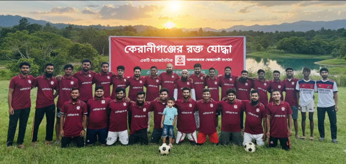 কেরানীগঞ্জের “রক্ত যোদ্ধা” একটি অরাজনৈতিক স্বেচ্ছাসেবী সংগঠন, যা প্রতিষ্ঠার পর থেকেই সমাজের উন্নয়নমূলক কাজে নিরলসভাবে কাজ করে আসছে। মানবতার সেবাকে মূল লক্ষ্য হিসেবে নিয়ে সংগঠনটি ইতোমধ্যেই অসংখ্য কার্যক্রমের মাধ্যমে সাধারণ মানুষের হৃদয়ে জায়গা করে নিয়েছে।