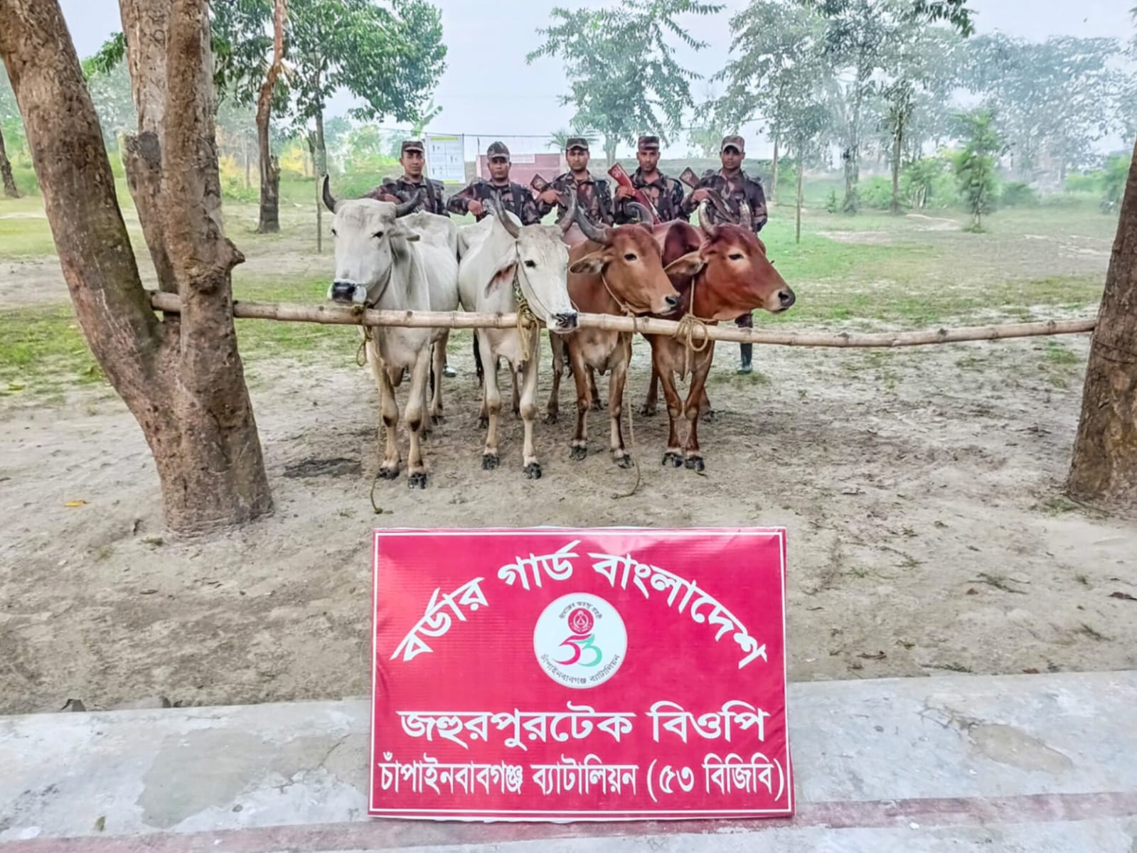 চাঁপাইনবাবগঞ্জে ৫৩ বিজিবির পৃথক অভিযানে ভারতীয় ০৮টি গরু জব্দ